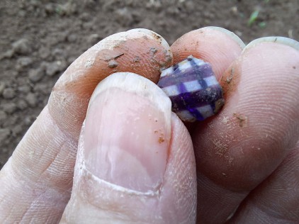 Korrekt ausgedrückt ist es eine Glasringperle in typisch spätkeltischer Machart und ein Highlight 10-jähriger Feldbegehungen von dem bei Wind und (Schnee-)Regen anzutreffenden Ackerläufer, wie man